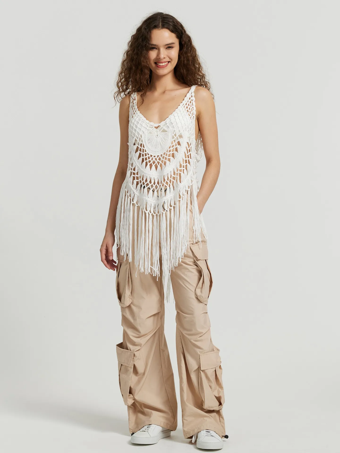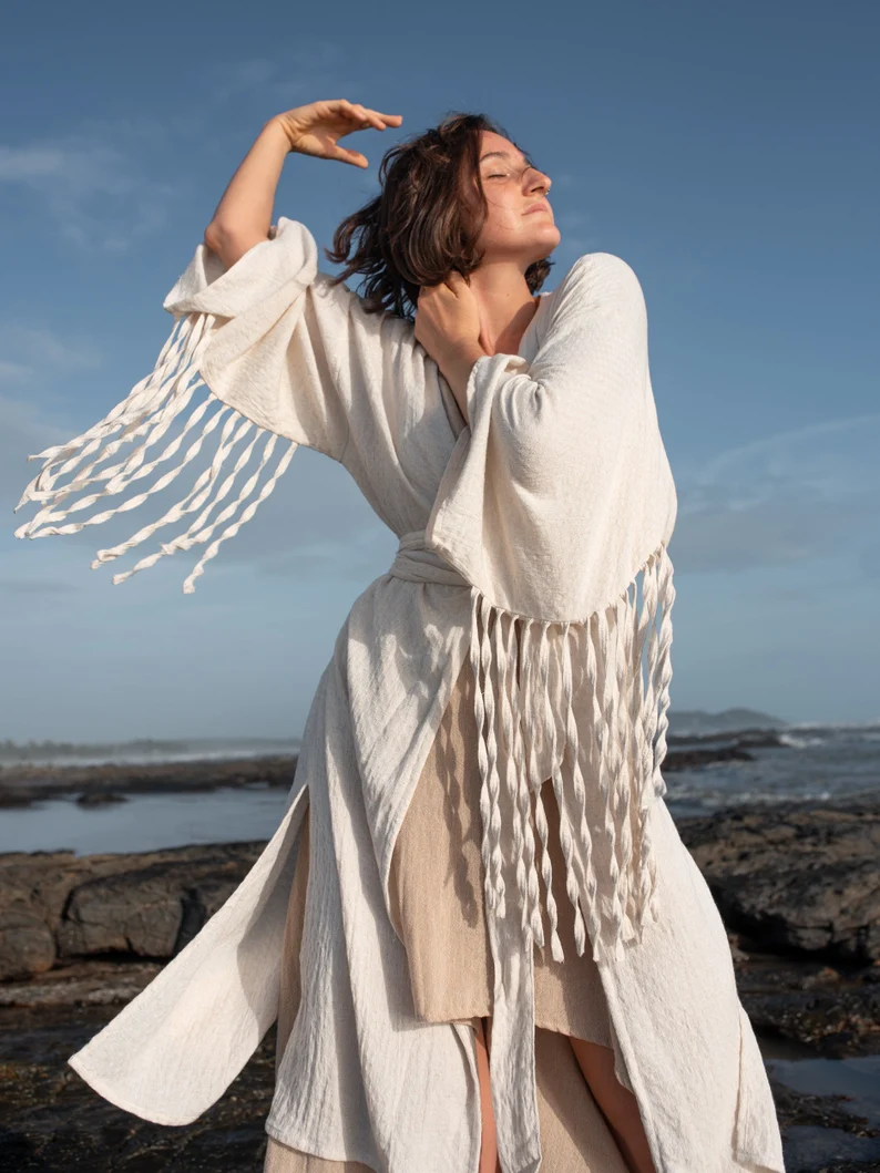 Layer with Boho Vests and Kimonos: Layering is a key element in boho chic style. Add a lightweight, white boho vest or a fringed kimono over your outfit. These pieces not only create visual interest but also provide a touch of warmth on cooler days.